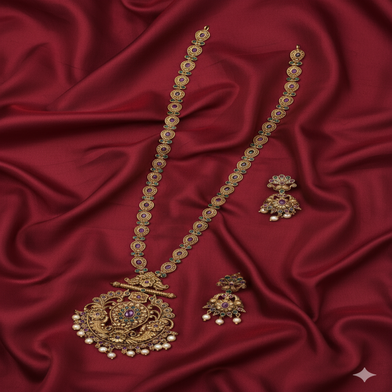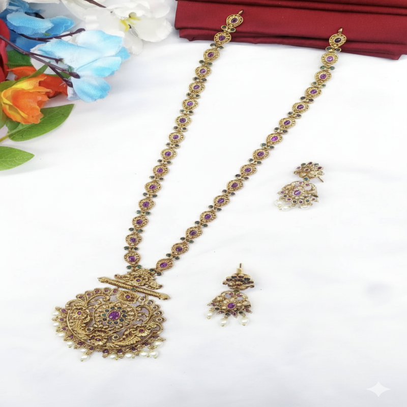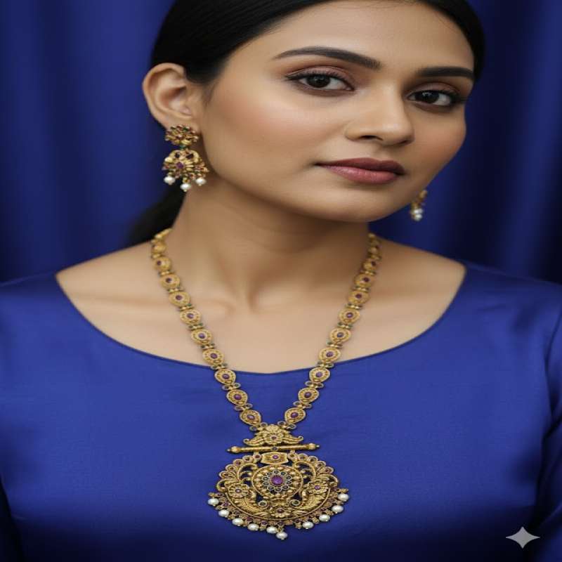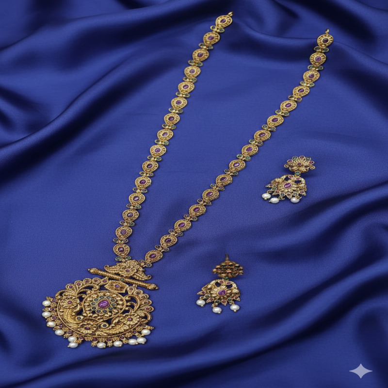 This type of jewelry is worn for formal events, weddings, or traditional festivals with a saree or lehenga.